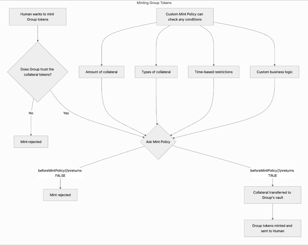 To register any group, all three policies must be provided; however, the implementation offers a trivial BaseMintPolicy That is deployed and can be referenced.